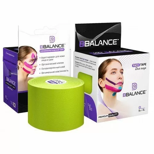 BB FACE TAPE™ 5 см × 5 м – косметологические тейпы из хлопка для эстетического тейпинга лица (цвет – лайм)