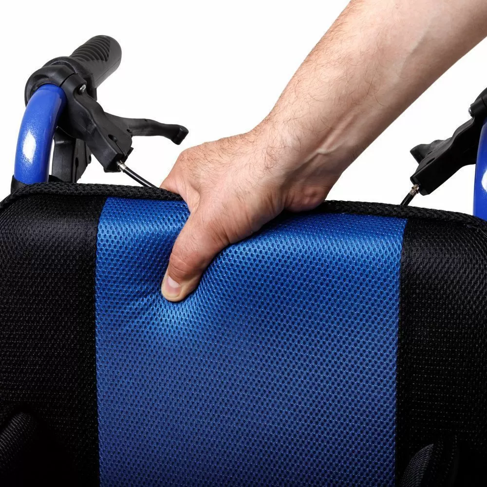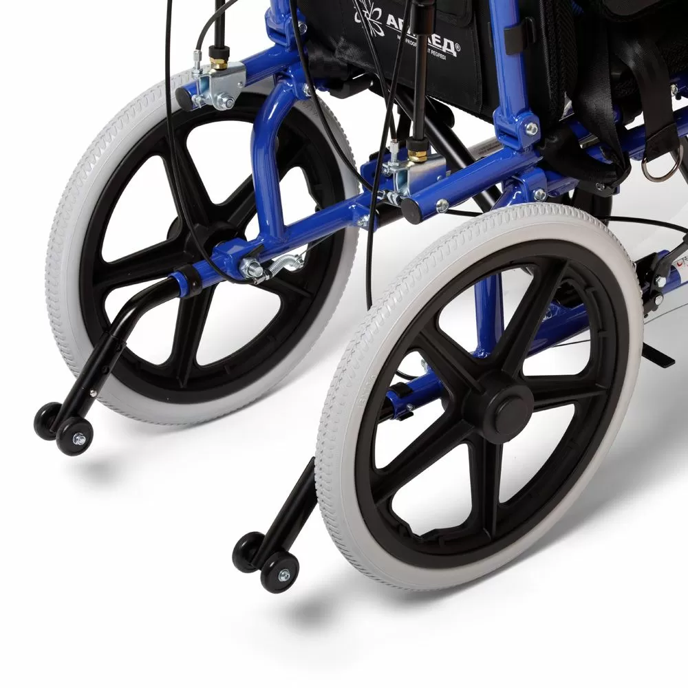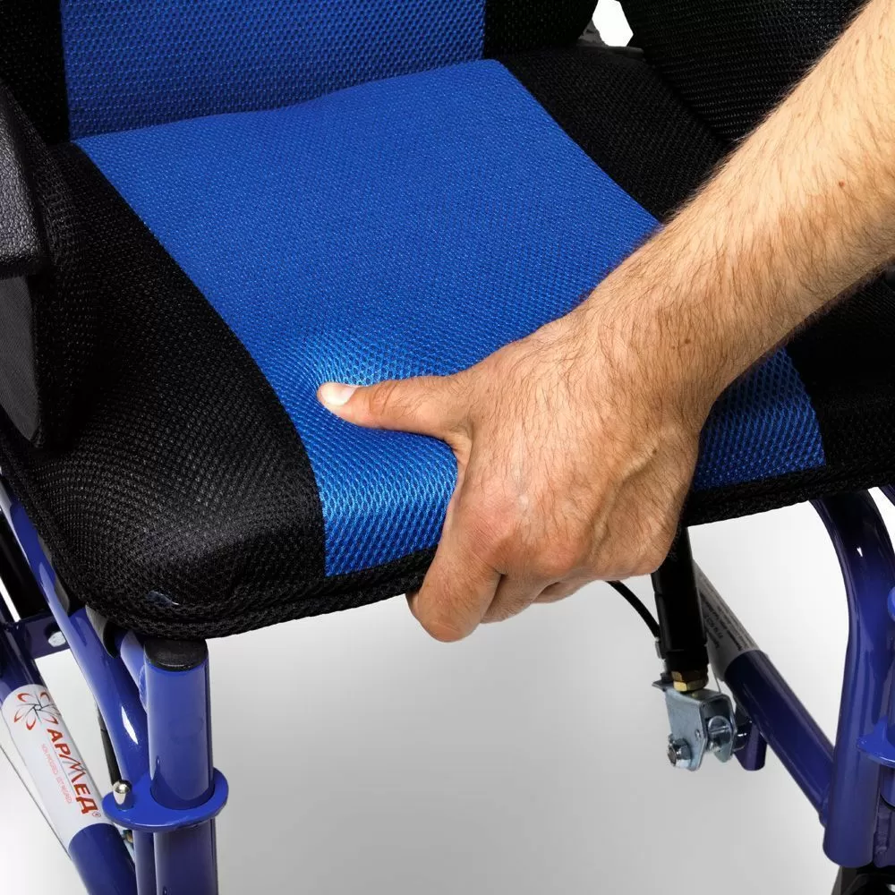 - Кресло-коляска легко складывается, принимая компактный вид. Небольшой вес позволяет без проблем перенести коляску, а также легко разместить ее в багажнике машины либо убрать на хранение.