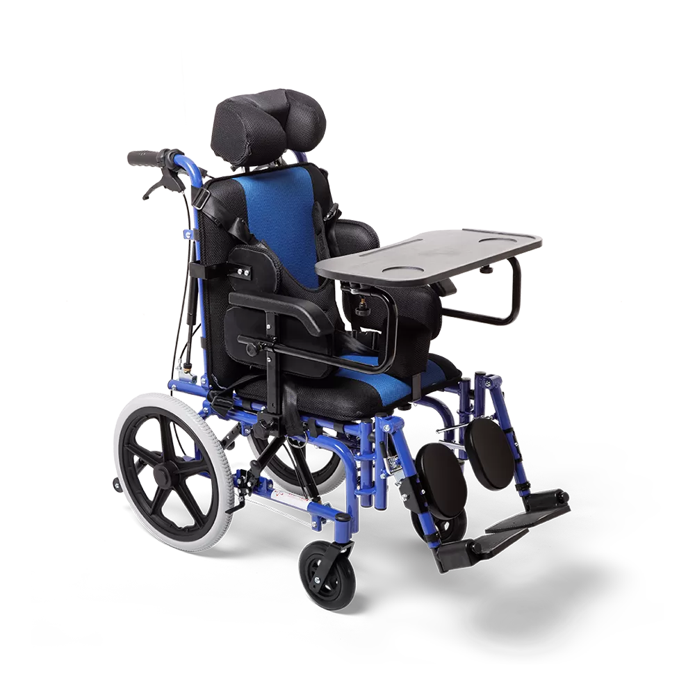 Абдуктор, Подголовник, Боковые фиксаторы туловища; Плечевые ремни безопасности; Поясной ремень безопасности; Столик; Мягкие опоры под голень |