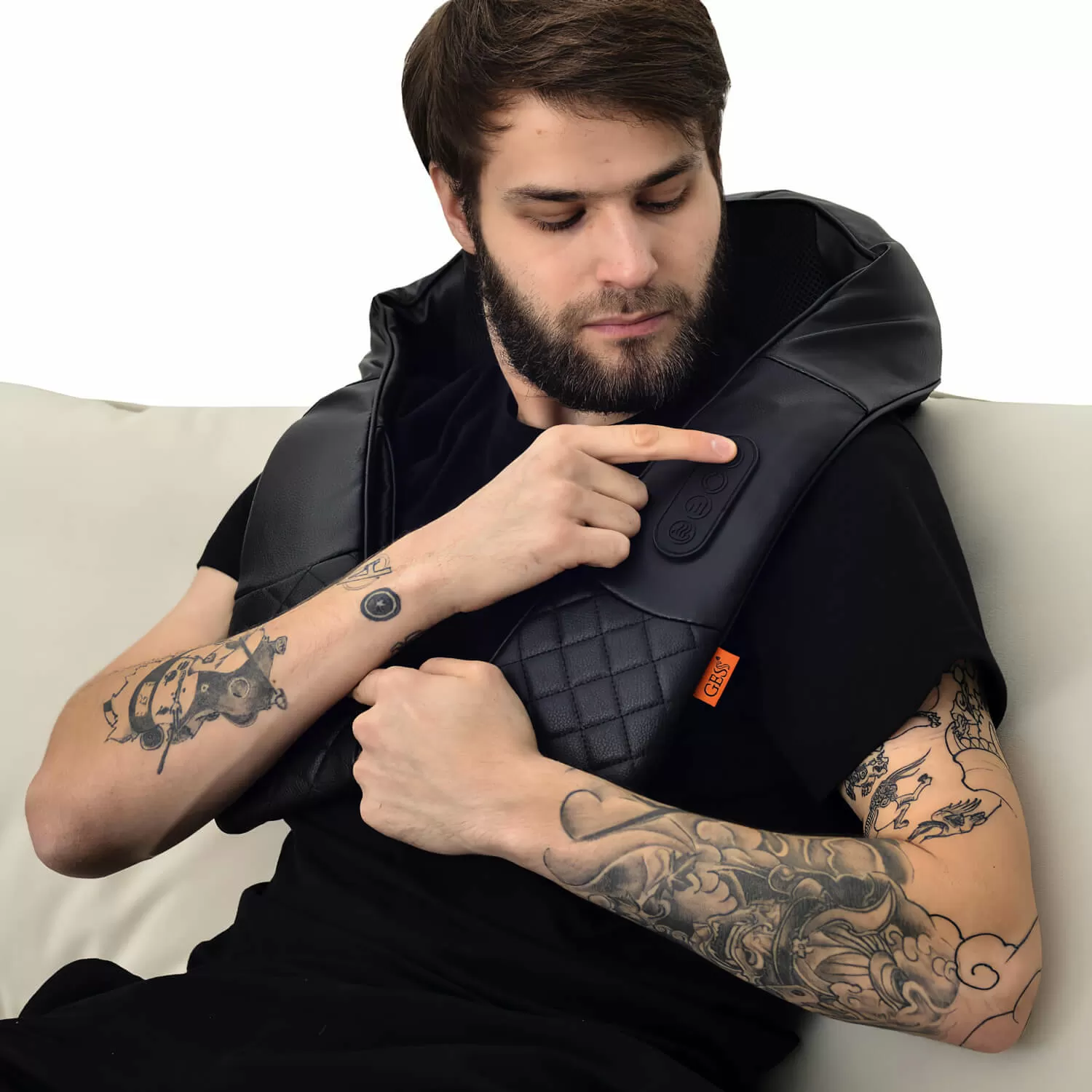 - 3D-массаж для всего тела. Массажер универсален и может применяться как для массажа шейно-плечевого отдела, так и проработки зоны спины, ягодиц, поясницы и других частей тела. Устройство повысит тонус организма при стрессах, поможет при застоях лимфы и отёчности ног, предотвратит появление варикоза, улучшит тонус мышц при малоподвижном образе жизни, снимет мышечное напряжение.