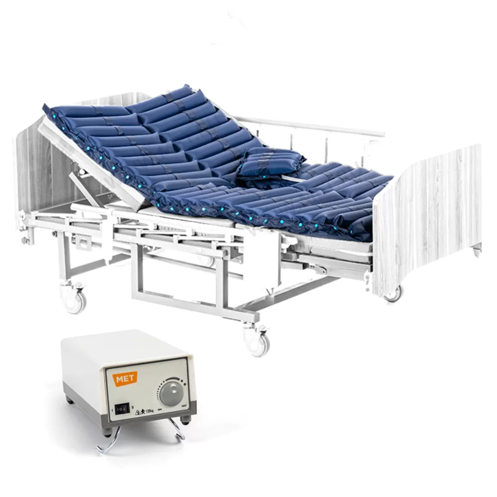 Малогабаритный электрокомпрессор размещается на полу или на боковой панели кровати. Регулировка задаваемого давления осуществляется в зависимости от массы пациента. Противопролежневый матрас обладает эффектом непрерывного массажа, предотвращает застои и не дает развиваться некрозу мягких тканей лежачего пациента.