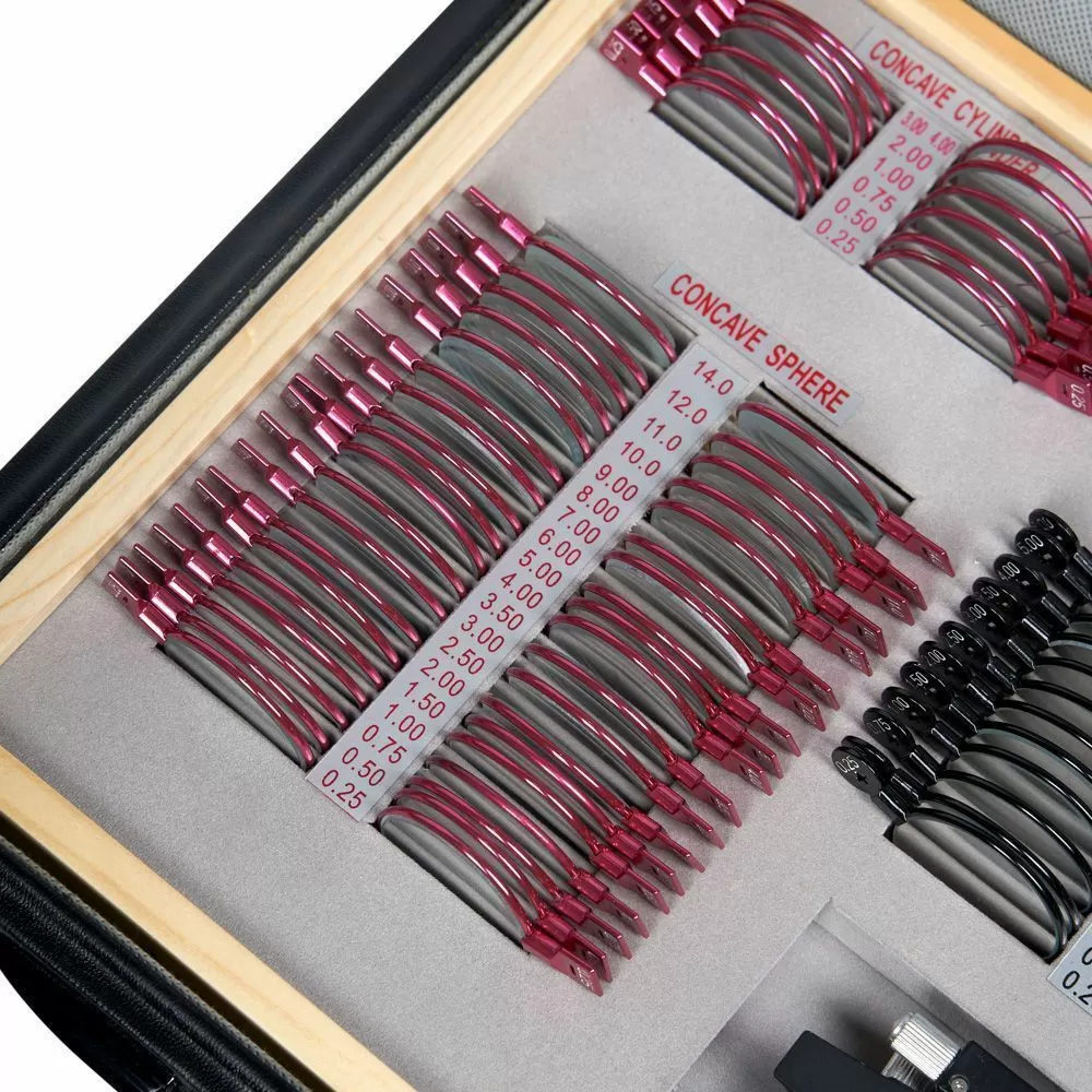 - Для проверки косоглазия и скрытого косоглазия, а также для тренировки структур глаз в наборе представлены призматические линзы. В набор входят парные очковые призмы от 0.5 пр дптр до 3.00 пр дптр