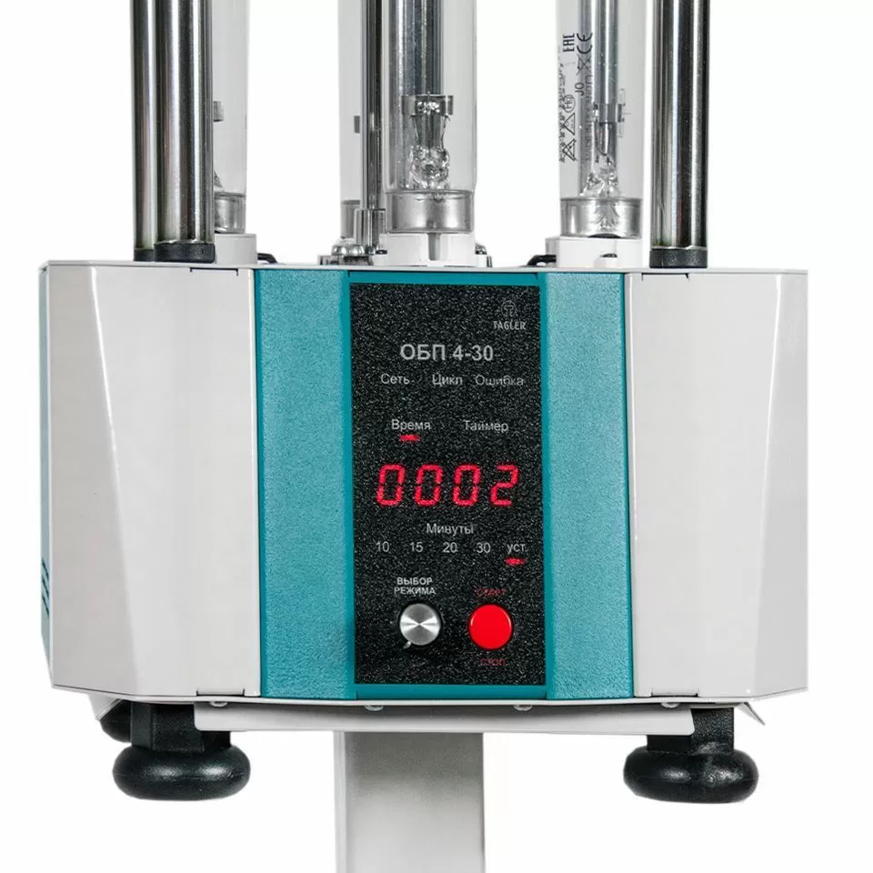 Реакция живой микробной клетки на ультрафиолетовое излучение не одинакова для различных длин волн. В TAGLER ОБП 4-30 используются четыре ртутных разрядных лампы низкого давления мощностью 30 Вт каждая. Они дают коротковолновое излучение с максимумом при длине волны 253,7 нм, излучение с такой длиной волны наиболее эффективно разрушает микроорганизмы.