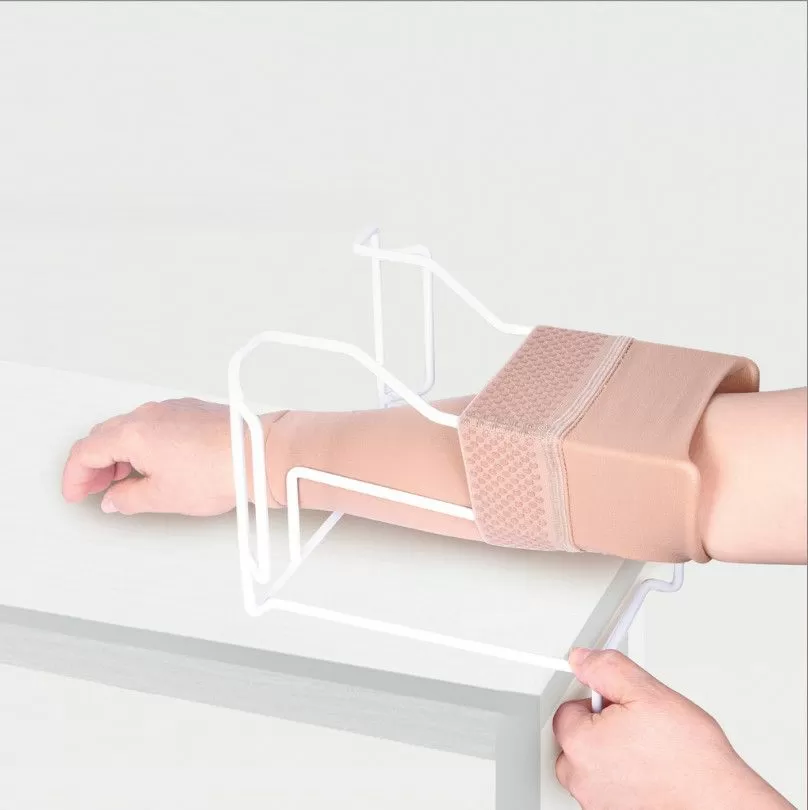 - Больную руку поместите в рукав и продвигайте ее вперед до полного надевания изделия.