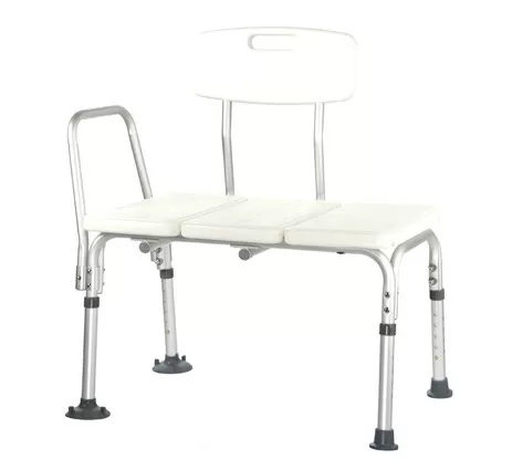 Стул для ванны, широкий, для людей с нарушениями опорно-двигательного аппарата. Установка ножек с присосками в ванну, а другие – вне ванны (регулировка разницы в высоте). Возможность установки в любую по ширине ванну. В зависимости от расположения ванны спинку можно легко установить с любой стороны.