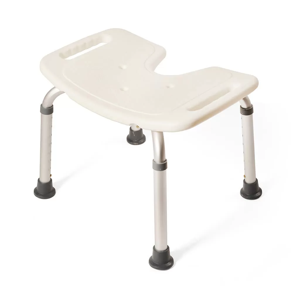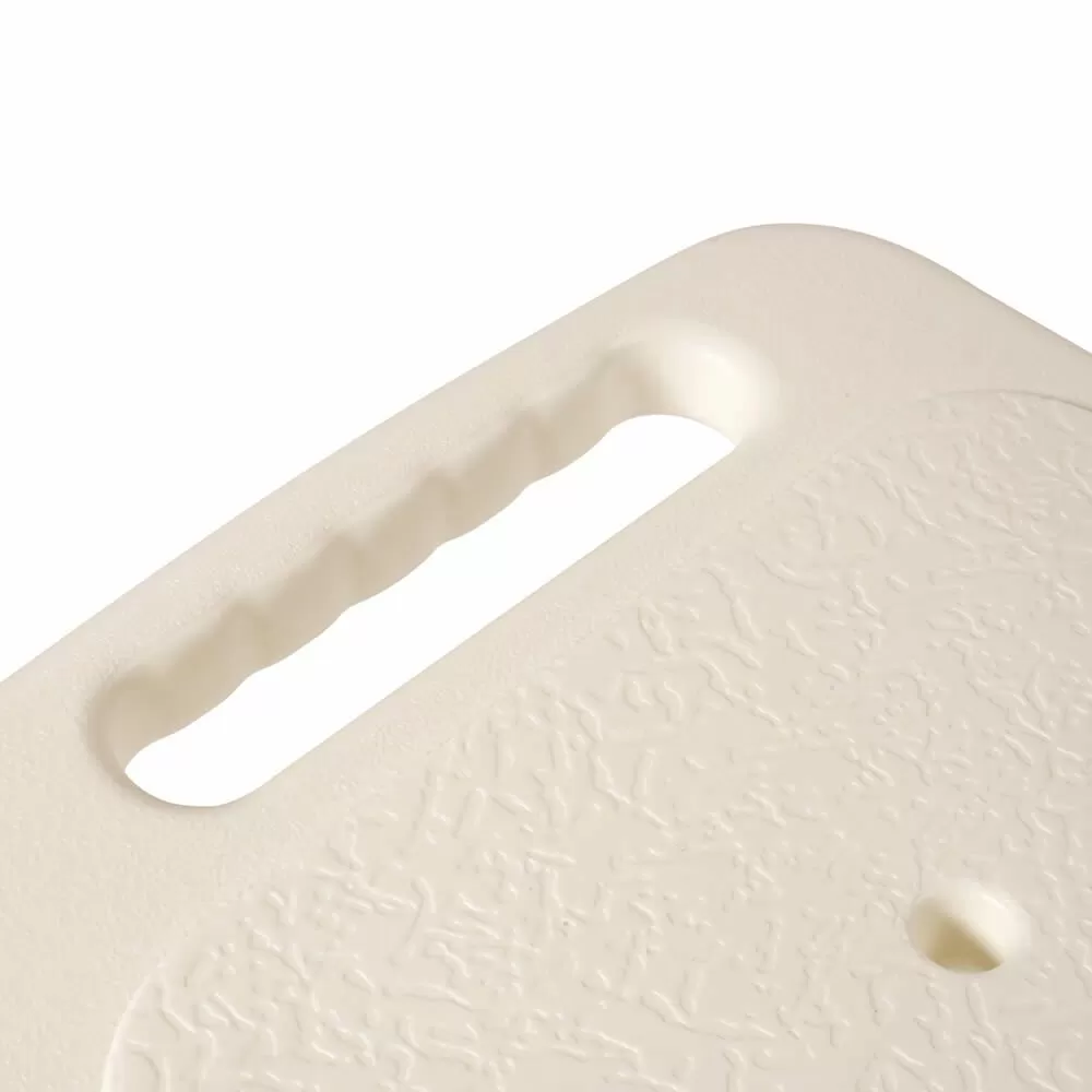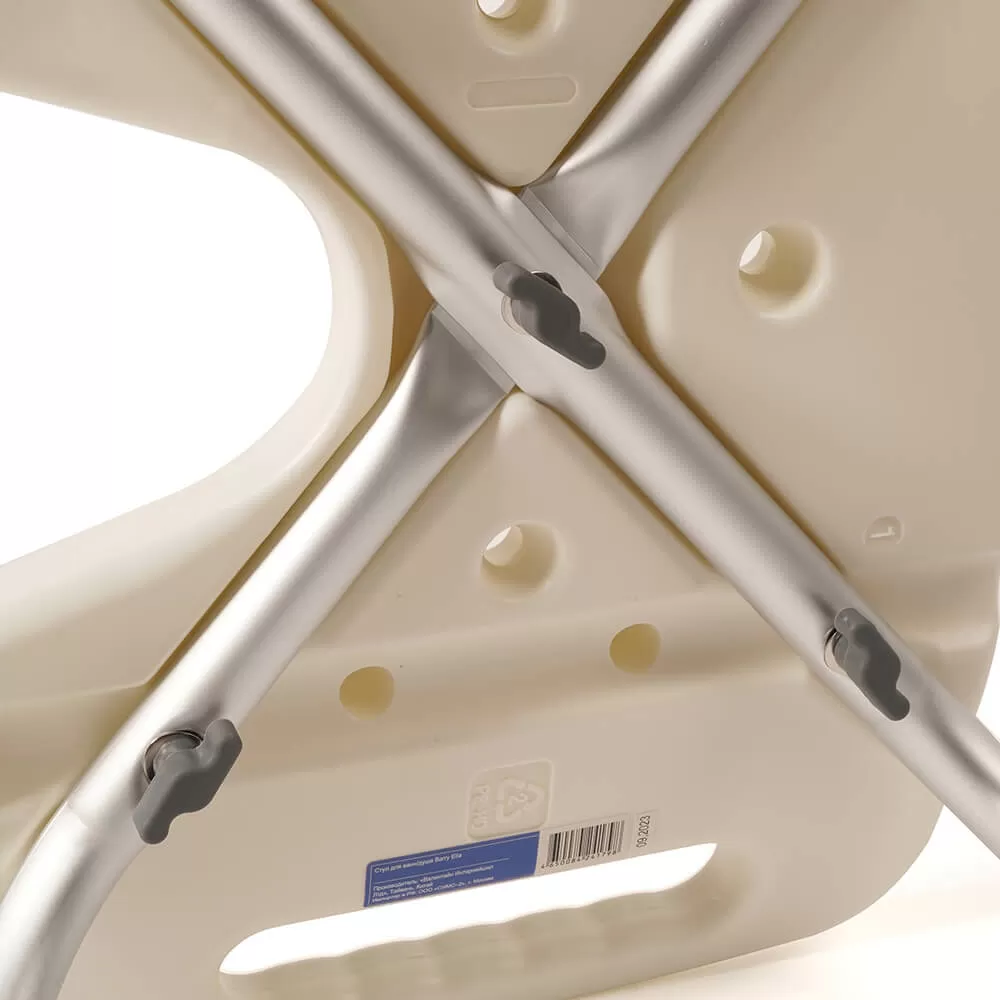 Основными особенностями стула являются наличие гигиенического выреза и боковых рукоятей. Собирать и разбирать изделие можно без использования инструментов. Ножки съемные и обладают противоскользящими насадками.