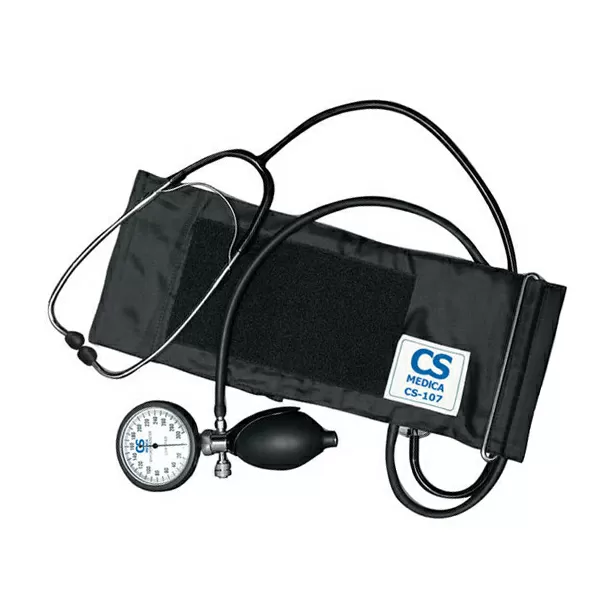 Механический тонометр со встроенным фонендоскопом и увеличенным манометром, совмещенным с грушей.